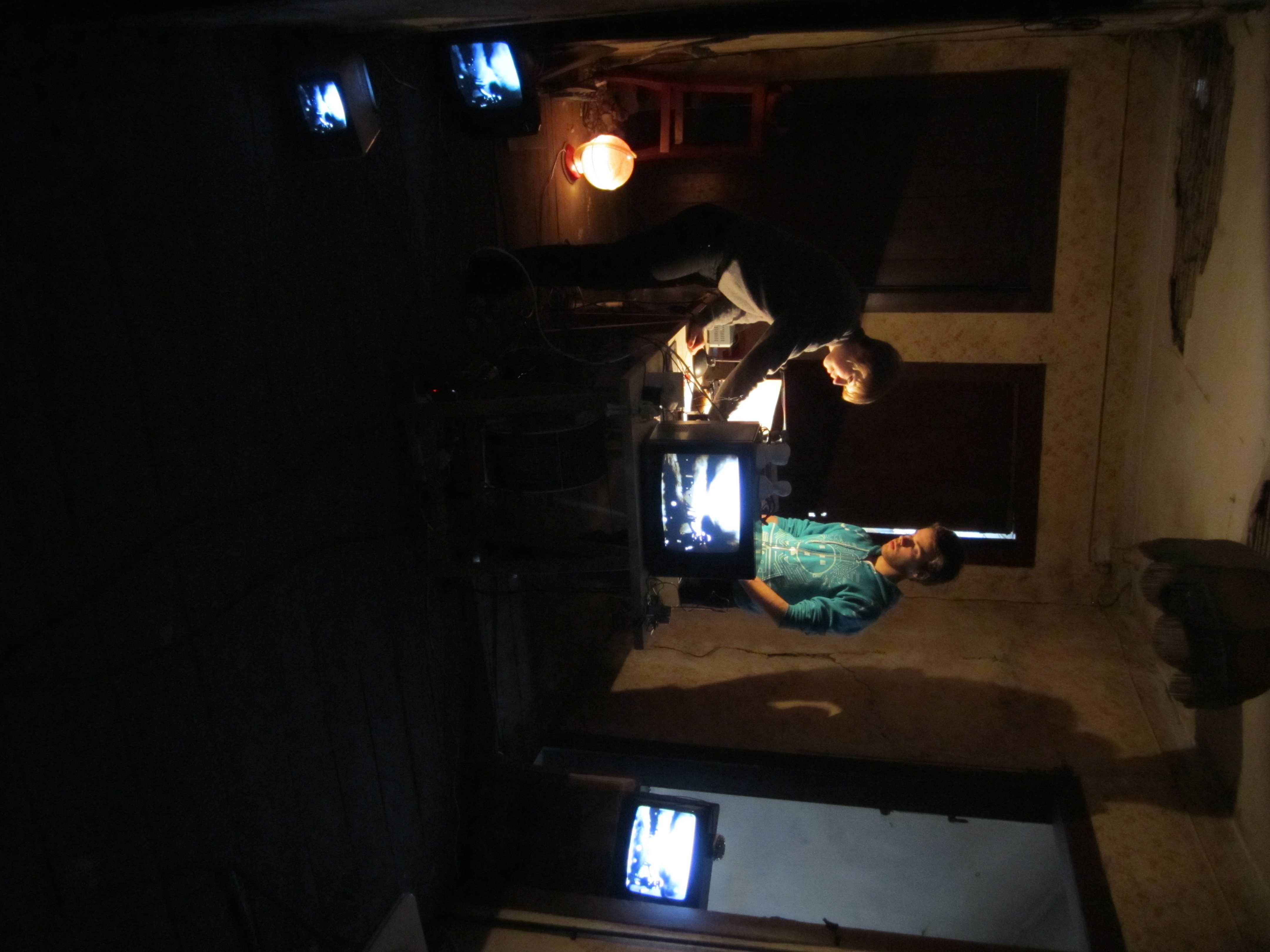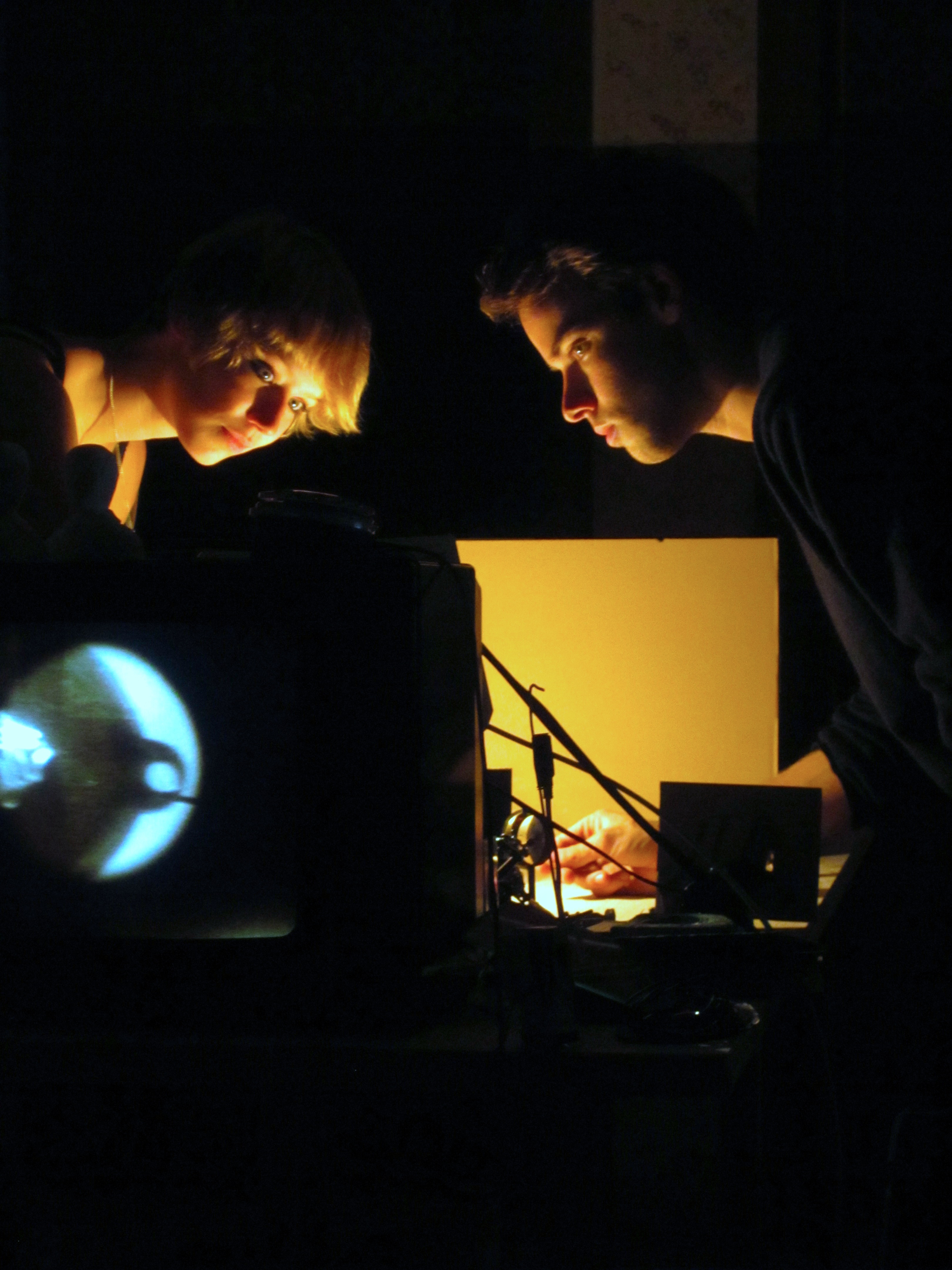 Der Zuschauer sieht zwei Spieler, wie sie an einem Tisch live vor einer Kamera einen Film konstruieren. Dieser wird zeitgleich auf viele im Raum verteilte Fernseher, zusammen mit Musik, übertragen. In Anlehnung an Stumm- und Genrefilme arbeitet die Performance mit Versatzstücken aus nachgestellten Filmzitaten, Objekten, bekannten Erzählstrukturen und Filmtricks. Die erzählte Geschichte ist phantastisch, nicht direkt narrativ und sowohl eine Beschreibung eines fiktiven Ortes, als auch die Reflexion über ein Medium. Die Spieler manipulieren die Bilder in der direkten Verlängerung der Bildröhre - das wiederholbare, konservierte Fernsehbild wird zum Live-Act.
