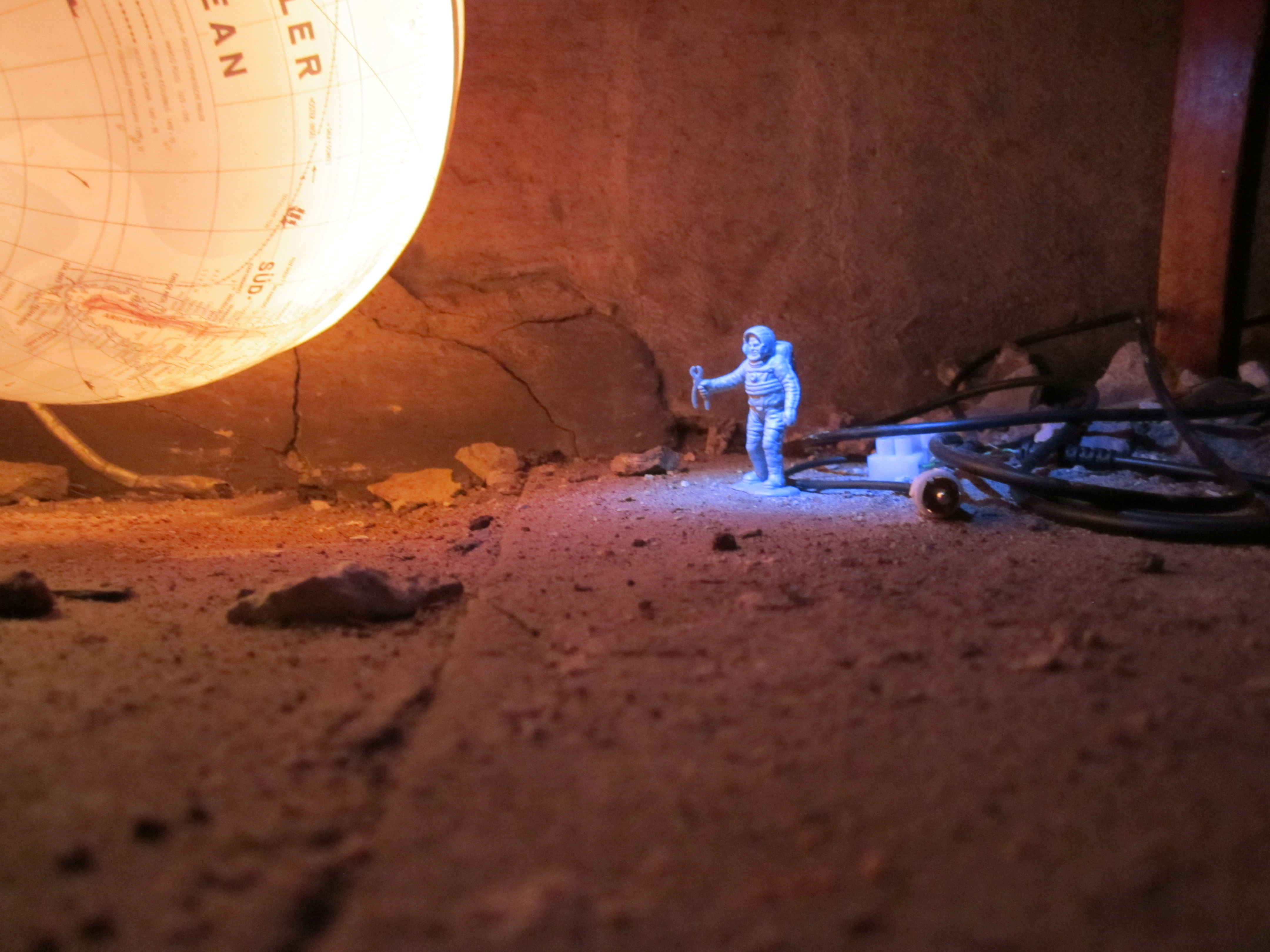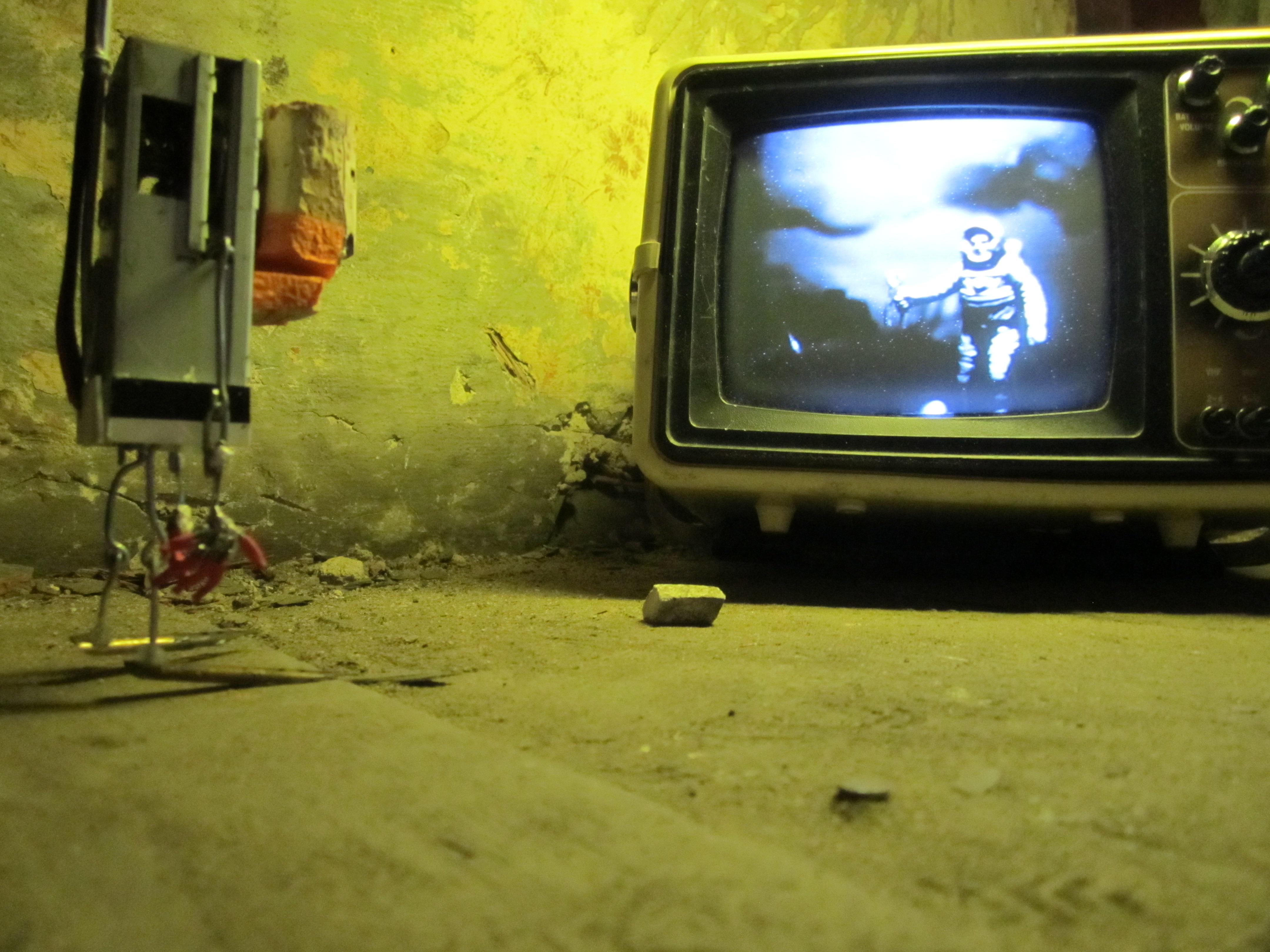 Ausgestattet mit einer Überwachungskamera, Fernsehmonitoren und einem alten Plattenspieler, wird aus einem Sammelsurium an Fundstücken eine dichte Bilderwelt. Die Erzählungen sind die fantastischen Dokumente einer verloren gegangenen Welt.